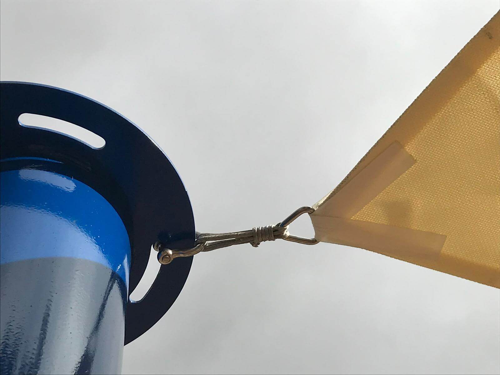Las estructuras de velas de sombra Mobipark están diseñadas para ofrecer máxima resistencia y una larga vida útil. Están fabricadas con acero estructural S27, tornillería y cables de acero inoxidable AISI 316 marino y protección anticorrosiva con acabado en polvo de poliéster.